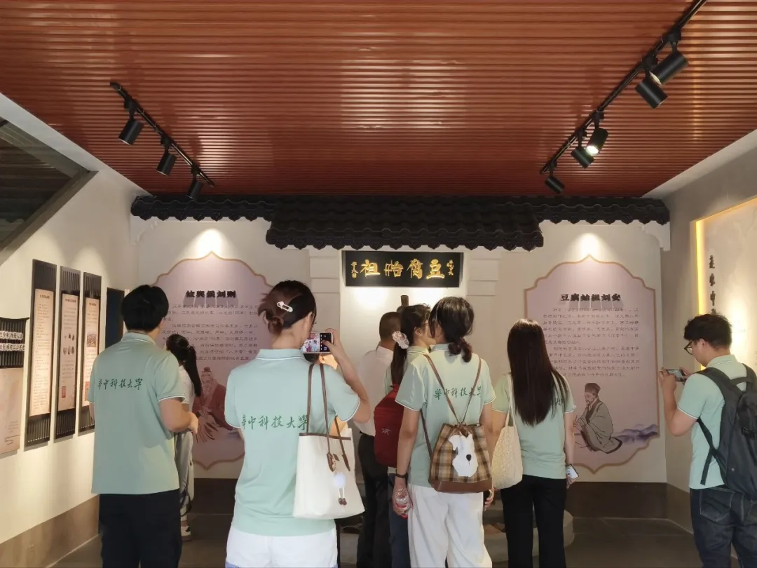 随后,湖南攸县实践队一行步入攸县香干文化展览馆,开启了一场与历史的深度对话。馆内的展陈墙犹如一幅画卷,将攸县豆腐(香干)自汉代刘安、历经千年传承的非遗技艺脉络清晰地呈现。队员们驻足凝望,仿佛穿越时空,深刻感悟这一地方特产从民间小吃到现代产业的宏大演变,领略了非物质文化遗产的深厚底蕴。展馆一隅,一面熠熠生辉的荣誉墙尤为引人瞩目,无声诉说着古老技艺在当代焕发出的蓬勃生机,成为了这份千年传承最具活力的注脚。